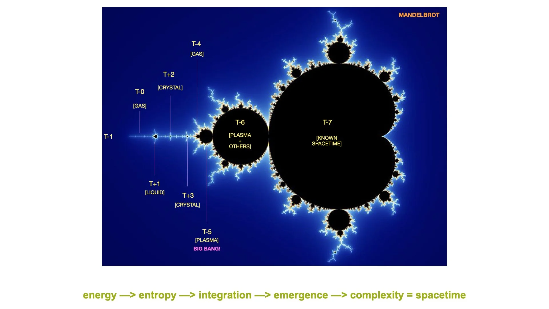 2. The Mandelbrot fractal is (and complex math graphs in general are) a specific perspective of / map to the universe's infinite history and inescapable future.