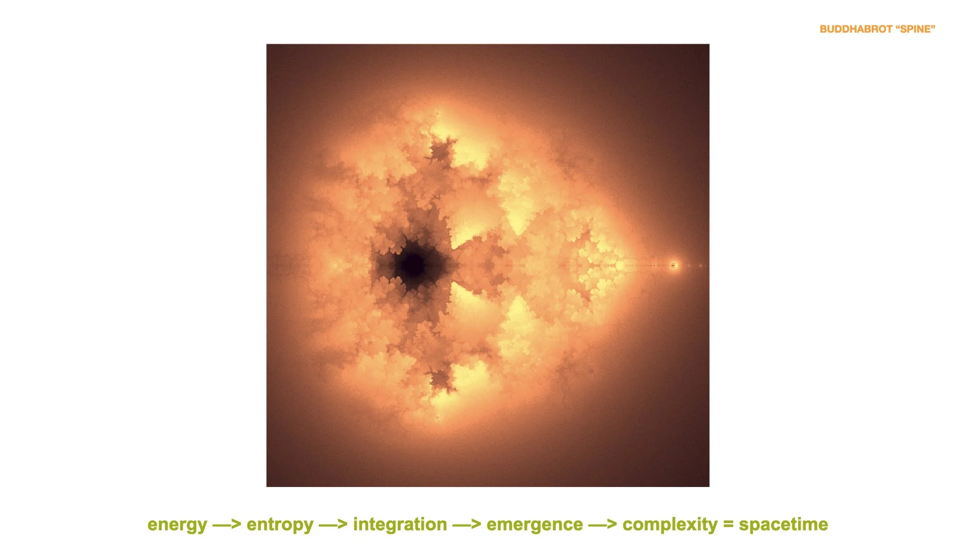 b. The Buddhabrot fractal (visual depicting probabilities of the points that escaped the Mandelbrot) specifically depicts the trajectory of dark energy.